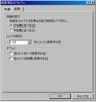 段組の各行を横に並べて1行(レコード)に変換する場合に、選択します。初期設定はこの項目です。