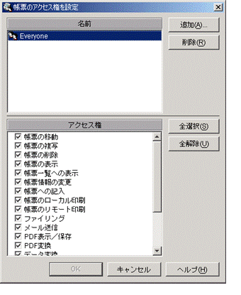 ダイアログボックスを閉じ、帳票のアクセス権を設定します。