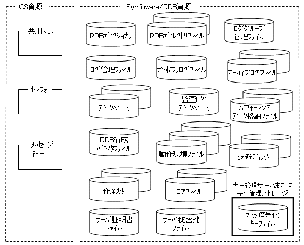 マスタ暗号化キーファイル | 格納データを暗号化する場合に、マスタ暗号化キーを保持します。マスタ暗号化キーファイルは、キー管理サーバまたはキー管理ストレージ上で管理します。 | |