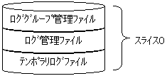 Solarisにおいて、スライス0にロググループ管理ファイル、ログ管理ファイルおよびテンポラリログファイルを作成します。Linuxの場合は“スライス0”を“パーティション1”に読みかえてください。