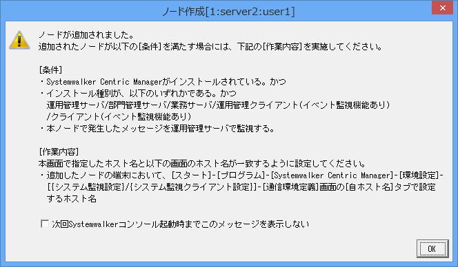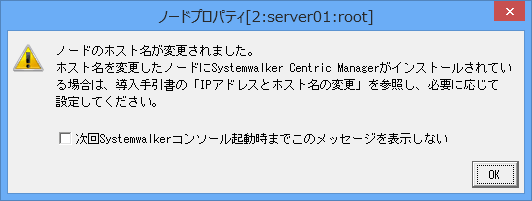 V13.2.0 以降では、ノードプロパティでホスト名を追加/変更した場合、警告メッセージダイアログが表示されます。