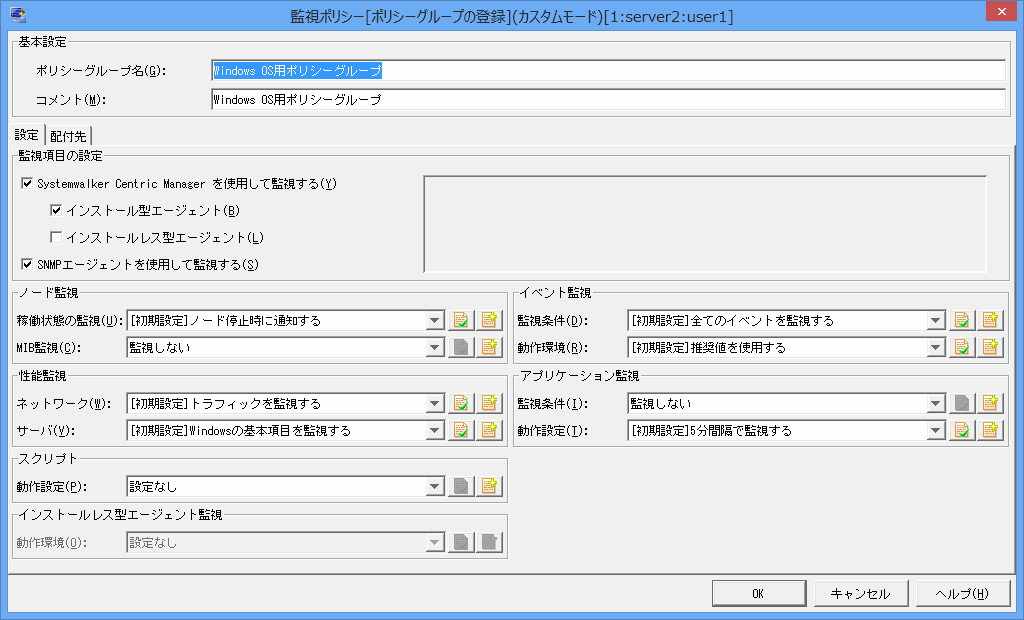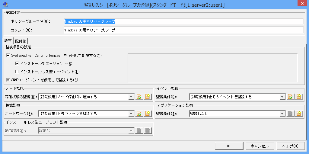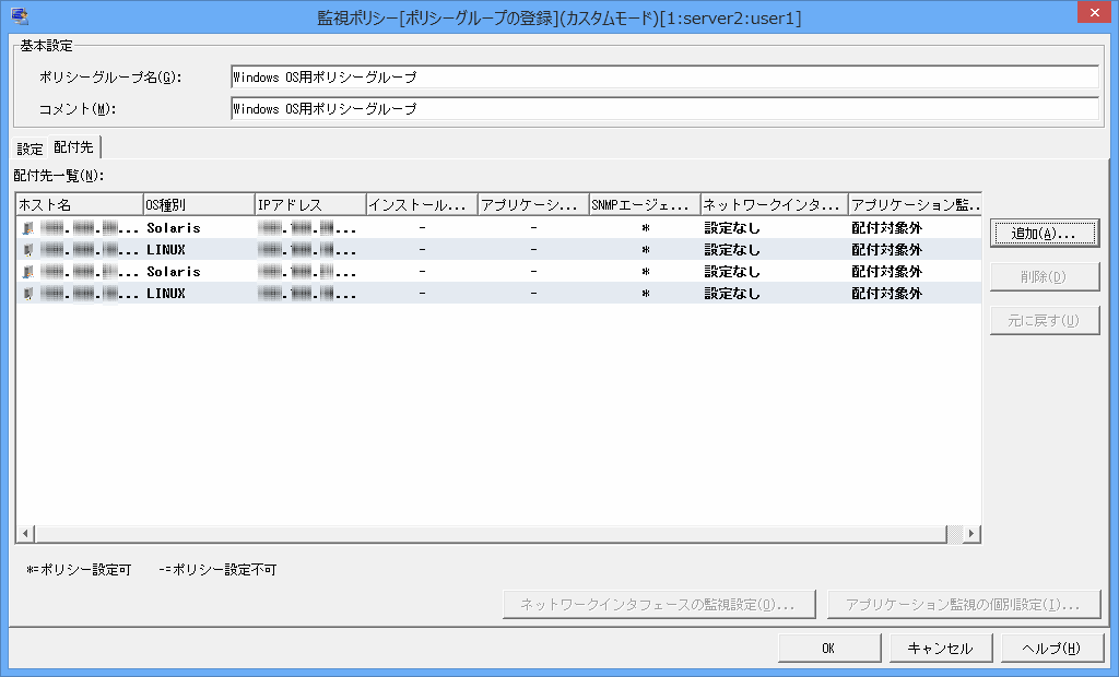 [OK]ボタンをクリックし、[監視ポリシー[ポリシーグループの登録](カスタムモード)]画面の[配付先]画面に戻ります。
