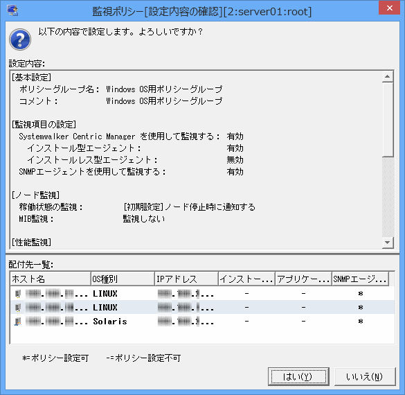 →[監視ポリシー[設定内容の確認]]画面が表示されます。