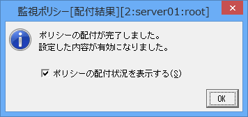 →ポリシーの配付が完了すると[監視ポリシー[配付結果]]画面が表示されます。