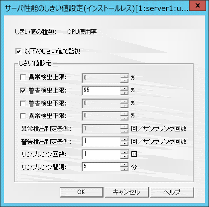 →[サーバ性能のしきい値設定(インストールレス)]画面が表示されます。