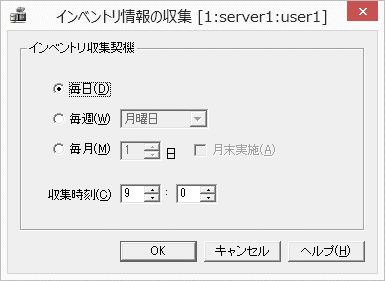 [インベントリ収集契機] | インベントリ情報収集に関して、インベントリ情報を収集する周期や収集する時刻を設定します。 | [インベントリ情報の収集] |