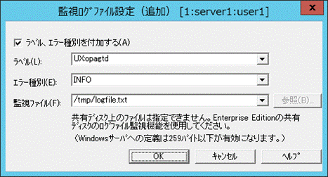→[監視ログファイル設定(追加)]画面が表示されます。