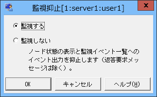 メンテナンス作業のために監視が不要となるノードに対し、監視を抑止するよう設定します。
