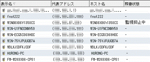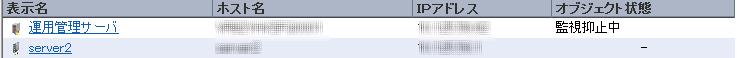 →監視抑止中のノードが表示名でソートされて一覧に表示されます。