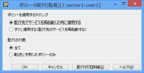 →[ポリシーの配付]ウィンドウが表示されます。