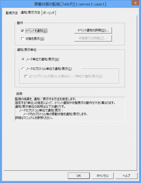 [稼働状態の監視] | [ポリシー]-[監視]-[ノードの監視(オプション)]-[稼働状態の監視(フォルダ)] |