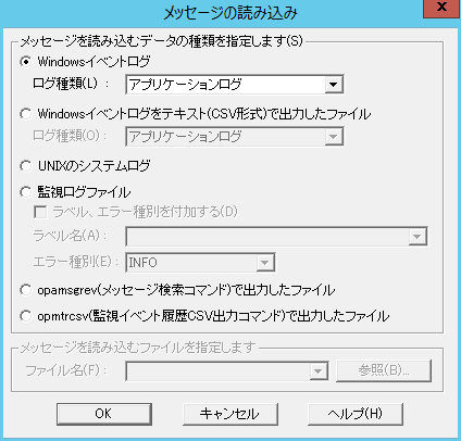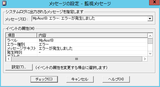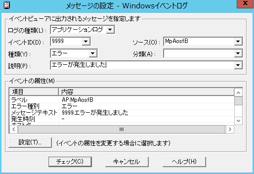 →[メッセージの設定-Windowsイベントログ]ダイアログボックスが表示されます。