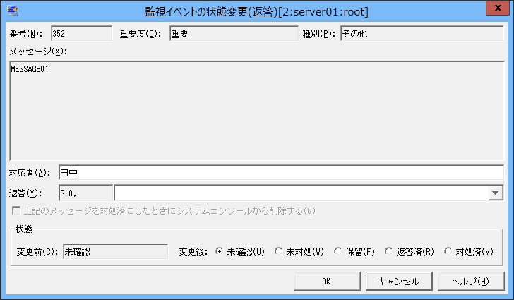 →[監視イベントの状態変更(返答)]ダイアログボックスが表示されます。