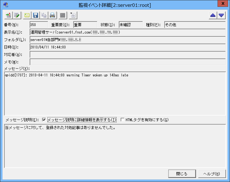 [監視イベント詳細]画面の[メッセージ説明]の表示について