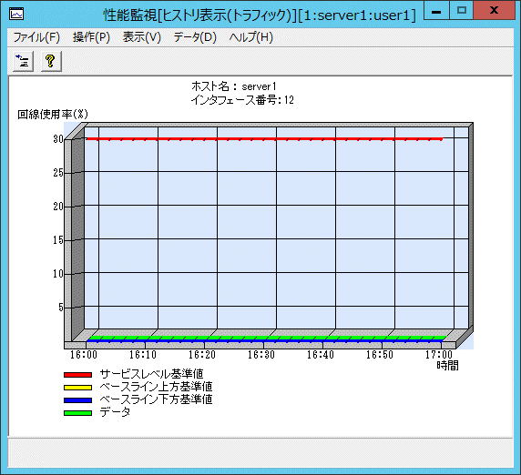 上記の場合、トラフィック情報として回線使用率が、サーバ性能情報としてCPU使用率が表示されています。