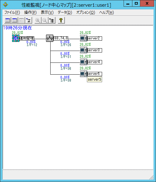 ノード中心マップでノードを選択した後、[オプション]メニューから[ノード詳細表示(サーバ性能)]を選択します。