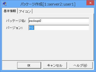 [基本情報]タブを選択し、作成するパッケージの[パッケージ名]、[バージョン]を入力します。バージョンには、パッケージのバージョンを指定します。