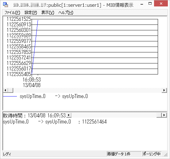 [MIB取得]画面の[ポーリング間隔]、[ログ出力]を指定することにより、継続的にMIBを取得してグラフに表示できます。