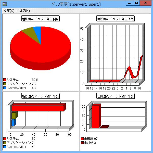 [Systemwalkerコンソール[監視]]で、[イベント]メニューの[グラフの表示]を選択すると、[グラフ表示]ウィンドウが表示されます。