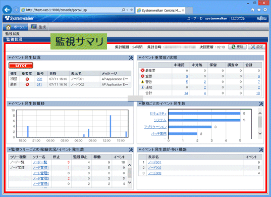 監視状況は、監視イベント情報を表やグラフで視覚的に表示した画面です。