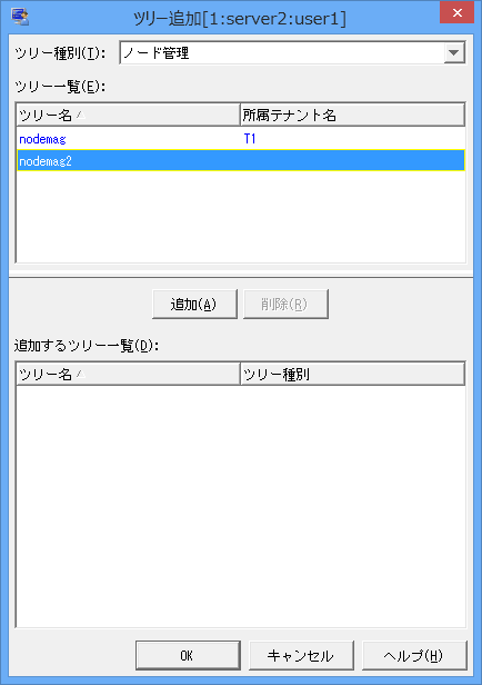 [ツリー追加]画面の[ツリー一覧]でツリーを選択し、[追加]ボタンをクリックします。