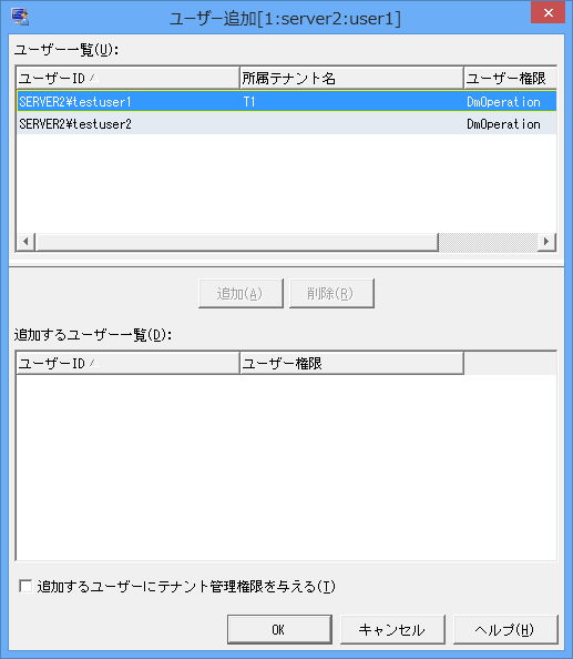 [OK]ボタンをクリックして、[テナントプロパティ]画面にユーザーを登録します。