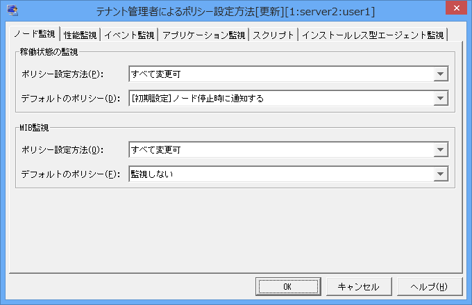 例えば、[ノード監視]のポリシーは変更できませんが、[アプリケーション監視]のポリシーはすべて変更できます。
