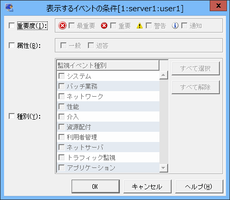 監視イベント一覧に表示したいイベントに合わせて、条件を設定し、[OK]ボタンをクリックします。