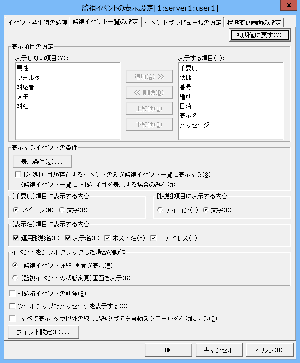 以下の手順で、監視イベント一覧に表示するイベントをユーザーごとに設定します。