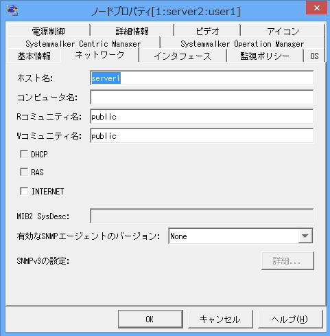 SNMPエージェントでの通信ができないノードの場合、[有効なSNMPエージェントのバージョン]は「NONE」となります。