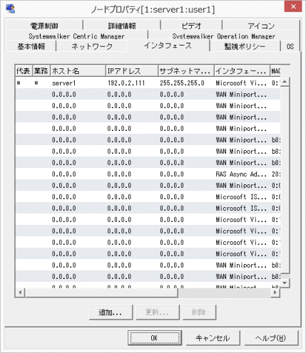 SNMPエージェントが稼働しているノードを検出した場合に、代表インタフェース以外のインタフェースのホスト名とIPアドレスに「0.0.0.0」と登録される場合があります。