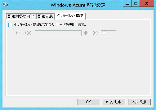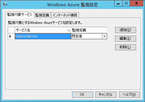 [スタート]-[Systemwalker Centric Manager Windows Azure 監視ツール]-[Systemwalker Centric Manager Windows Azure 監視ツール設定]を選択し、[Windows Azure 監視設定]ダイアログボックスを起動します。