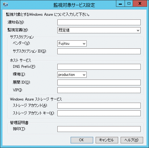 監視対象とするWindows Azureのサービスの情報を以下のように設定します。