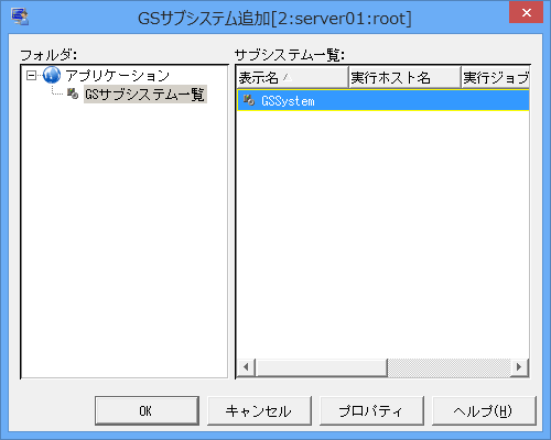 監視ツリーで、サブシステムを使用している業務(フォルダ)を選択し、[オブジェクト]-[追加]-[GSサブシステムの追加]メニューを選択します。