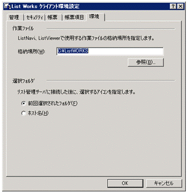 リストナビ、リストビューアの作業ファイルの格納場所として使用するフォルダを指定します。指定するフォルダには、すべてのユーザに対するフルアクセス権が必要です。