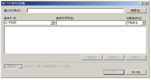 振り分け条件を複数指定した場合、項目間の条件を選択します。