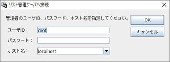 リスト管理サーバに接続するユーザIDを半角36 文字(全角18 文字)以内で指定します。管理者のユーザIDのみ設定できます。