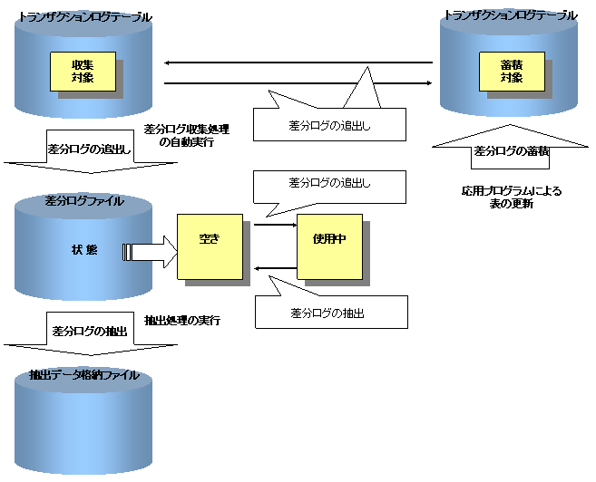 また、差分ログの追出しの結果、差分ログファイルが満杯になると、差分ログが出力できなくなりコンソールにエラーメッセージを出力しますが、自動で差分ログを破棄するため、利用者プログラムはエラーにはなりません。