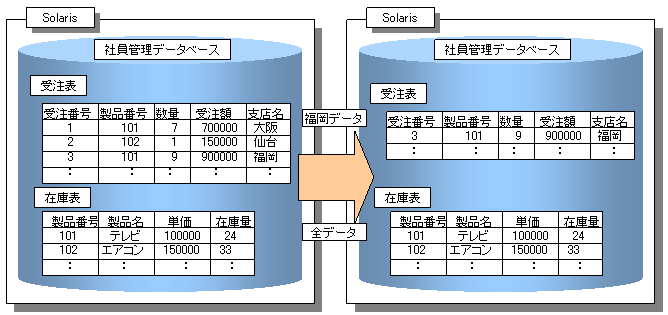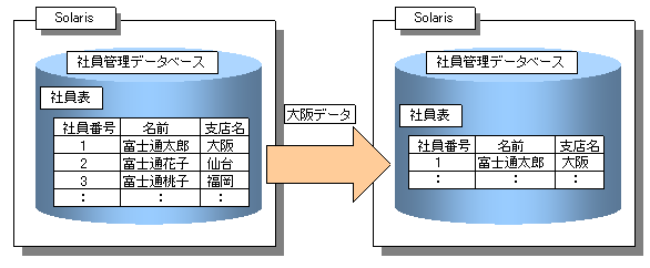 社員管理データベースの大阪支店のデータを複写先システムに複写します。