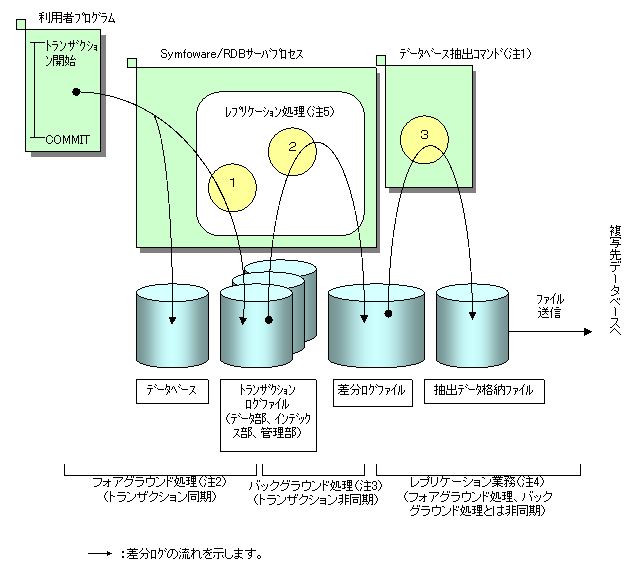注2)利用者プログラム(トランザクション)と同期をとりながら動作するレプリケーション処理を意味します。